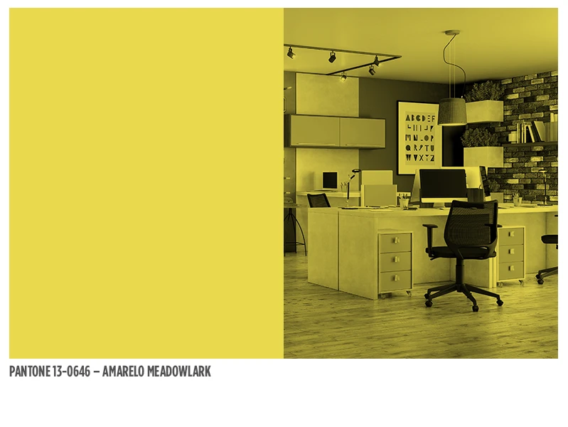 Você quer um ambiente mais alegre? O amarelo Meadowlark é a opção certa. Por conta do eclipse solar que ocorreu em agosto, ele se tornou uma das cores de 2018.