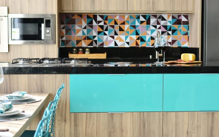 Outra maneira é apostar na cor para as paredes da sua casa. Neste projeto, criado pela Italínea, usamos alguns detalhes em Coral nos azulejos da cozinha, mesclando com cores complementares.